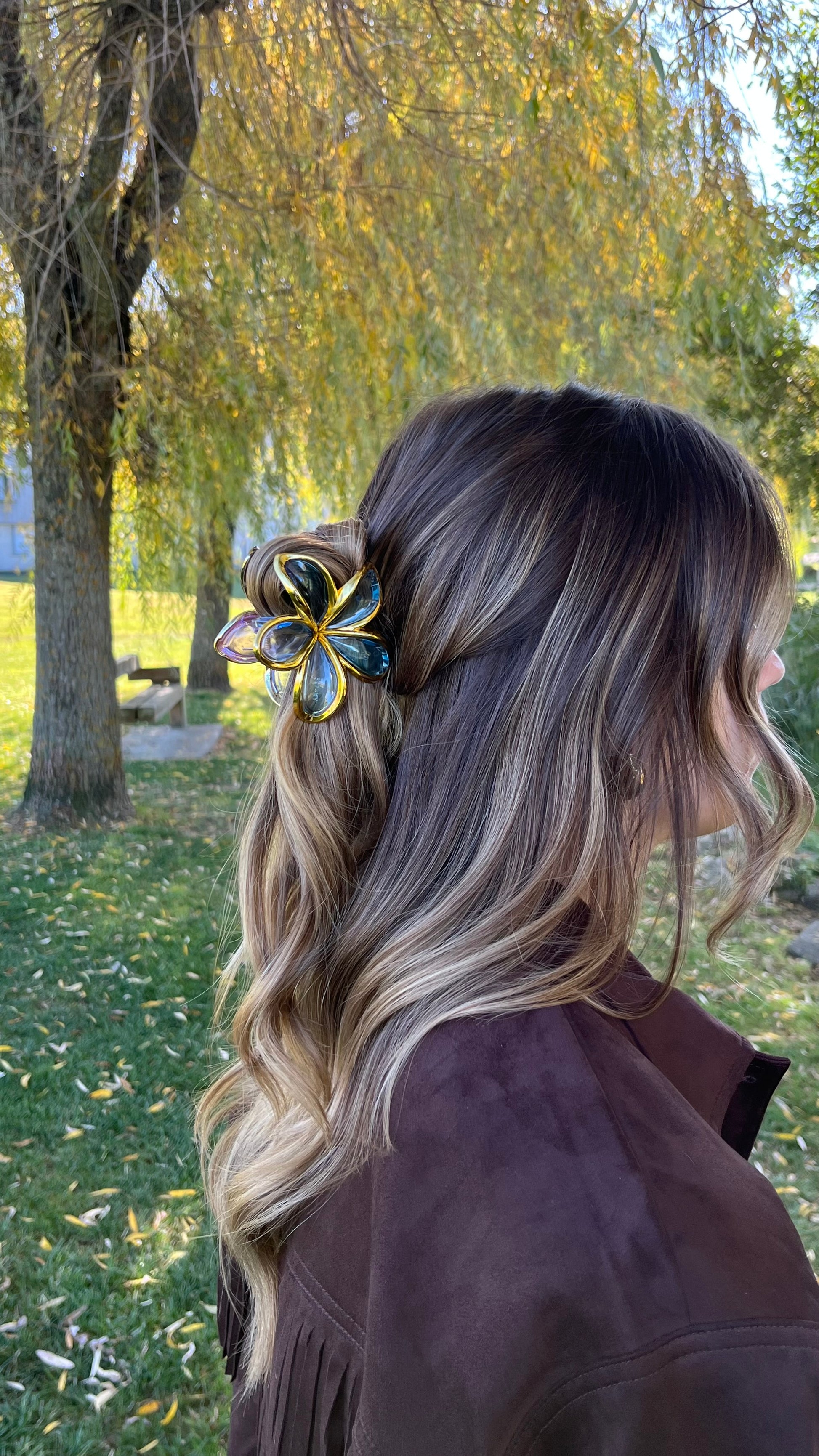 - La pince fleur Coralie, lumineuse et colorée, sublime vos cheveux avec originalité.