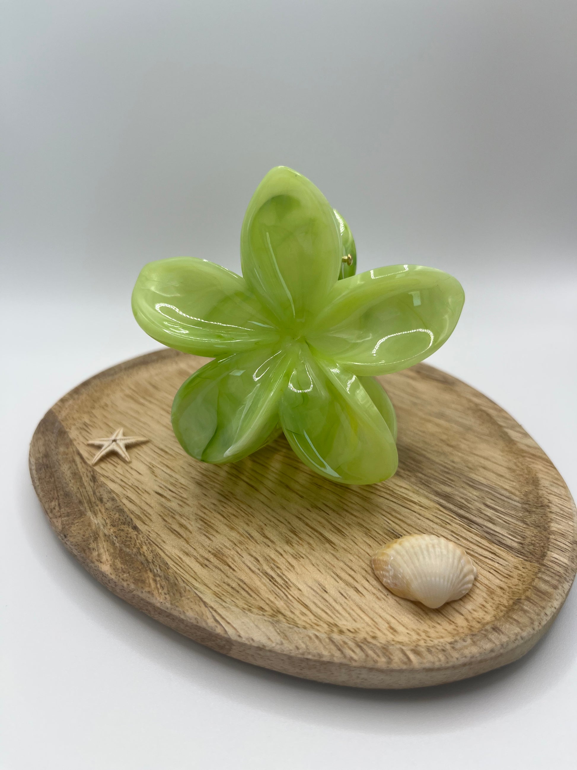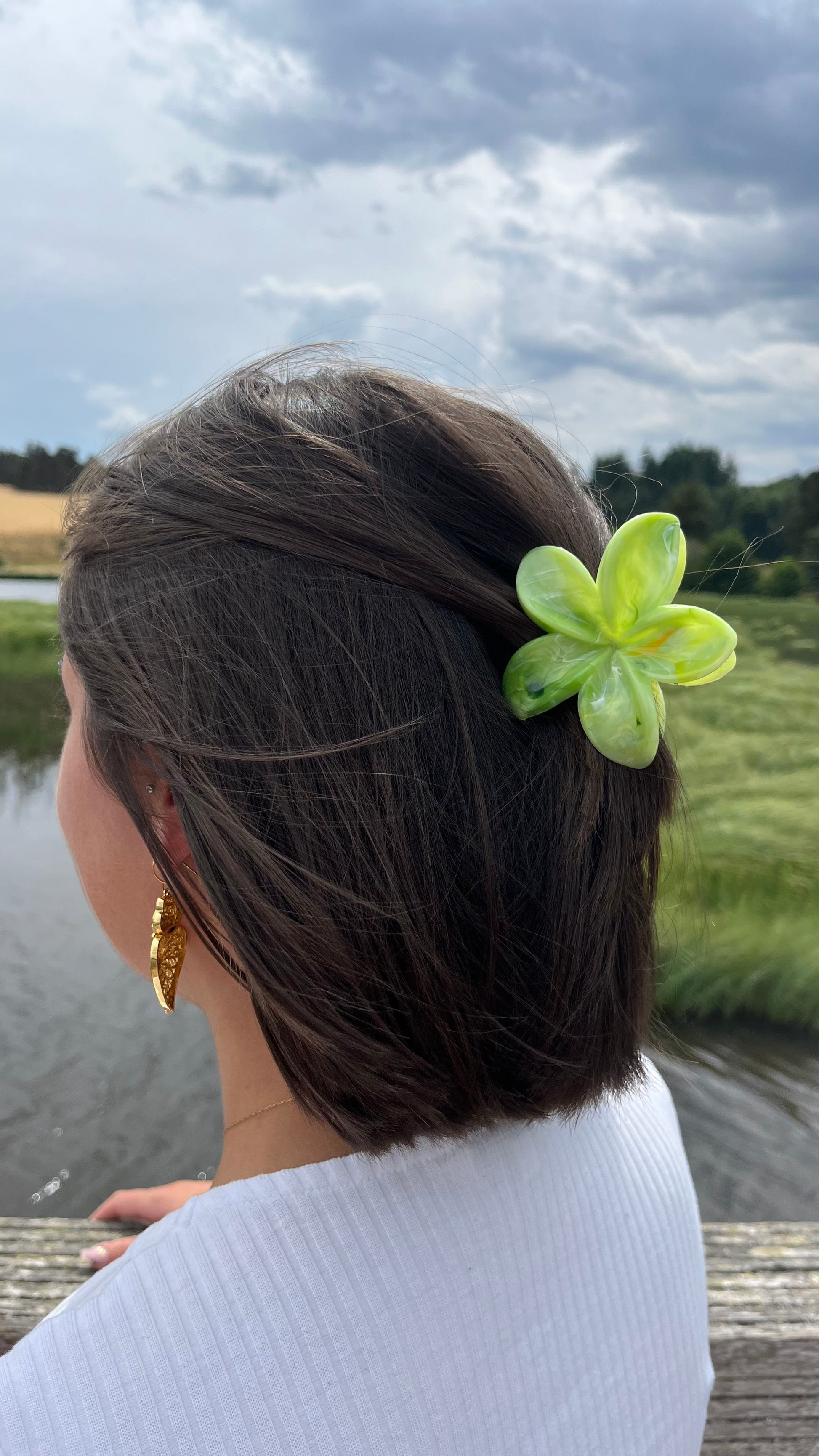 - Sublimez vos coiffures avec cette pince fleur aux nuances vertes marbrées.